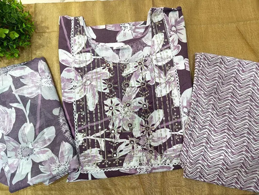 Siya Daily Wear Embroidered Cotton Kurti Set-ON SALE