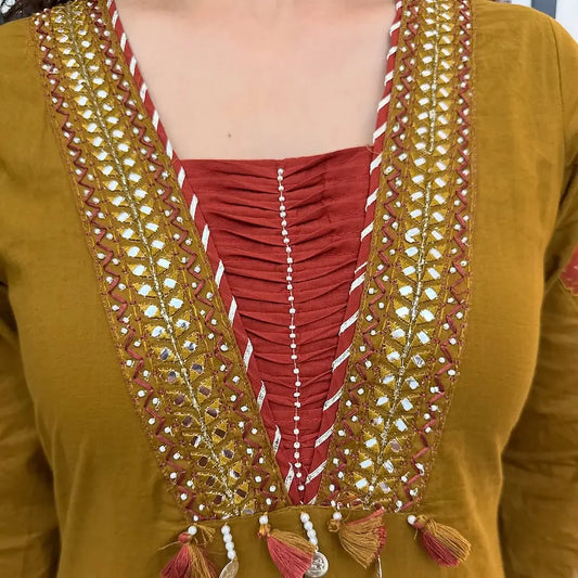 Ishani Heavy Embroidered Cotton Anarkali Kurti Set with Dupatta
