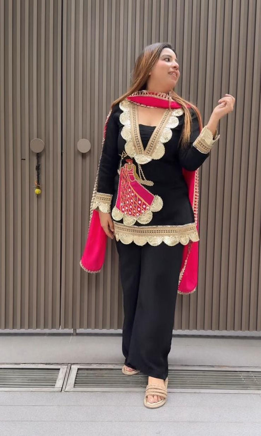 Misbah Embroidered Rayon Kurti Set in Pink and Black