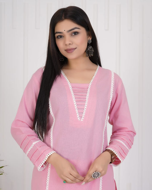 Maabetii Pink Cotton Lace Work Co-Ord Set