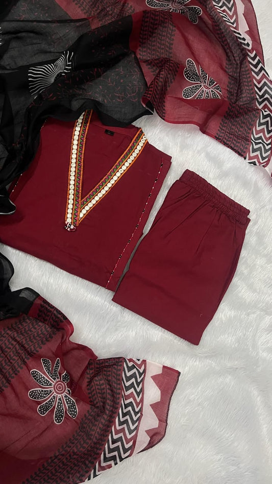 Chamak Heavy Embroidered Cotton Suit Set