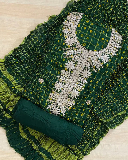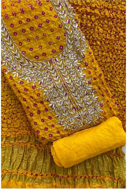 Ruhani Bandhej Print Gota Patti Handwork Suit Material