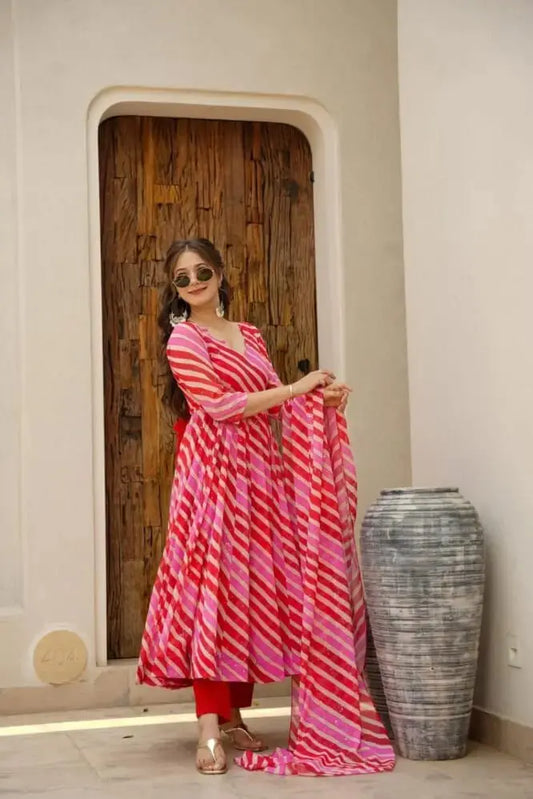 Gulnaar Cotton Kurti with Leheriya Dupatta