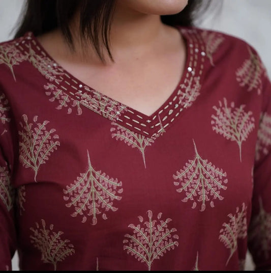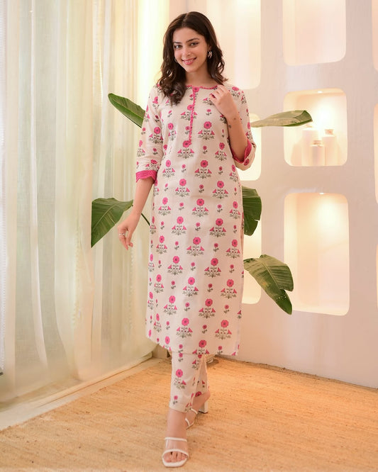 Vaidehi Pure Cotton Printed Kurti Pant Set