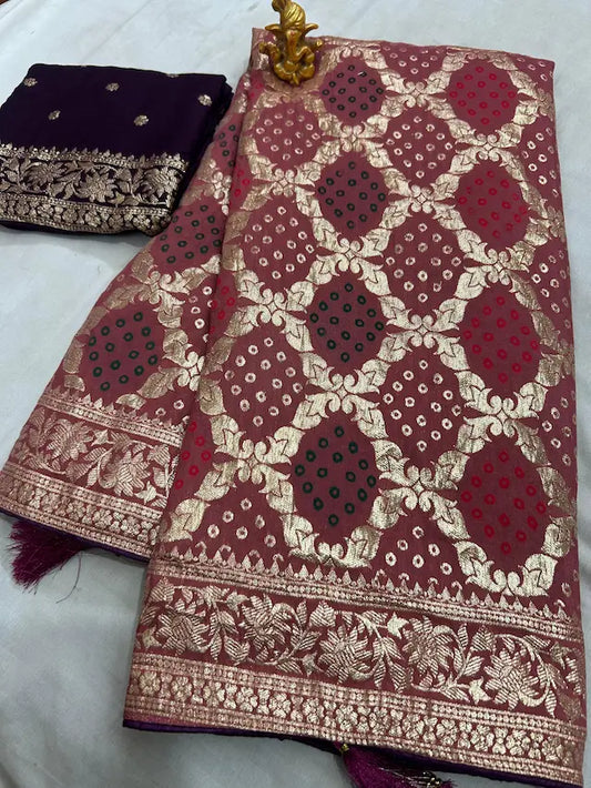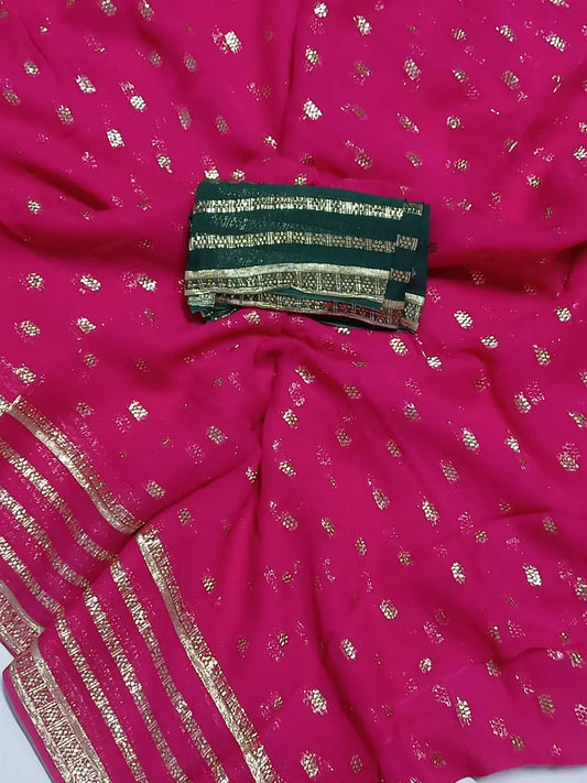 Mrinalini Banarasi Georgette Saree with Zari Border & Contrast Blouse