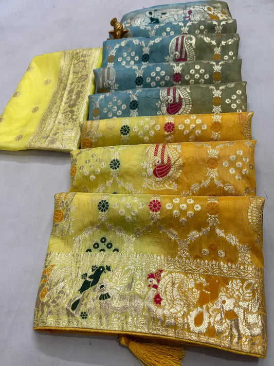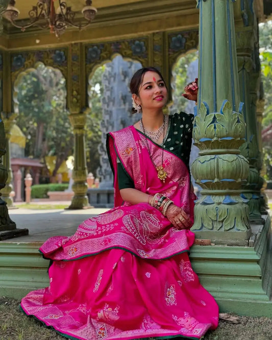 Aarunya Pure Dola Viscose Meenakari Weaving Saree with Zari Blouse