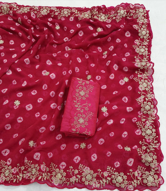 Maabetii Pink Georgette Hand Pita Work Saree with Running Blouse