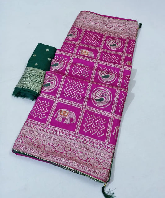 Kashika Pure Russian Silk Chunari Bandhej Saree