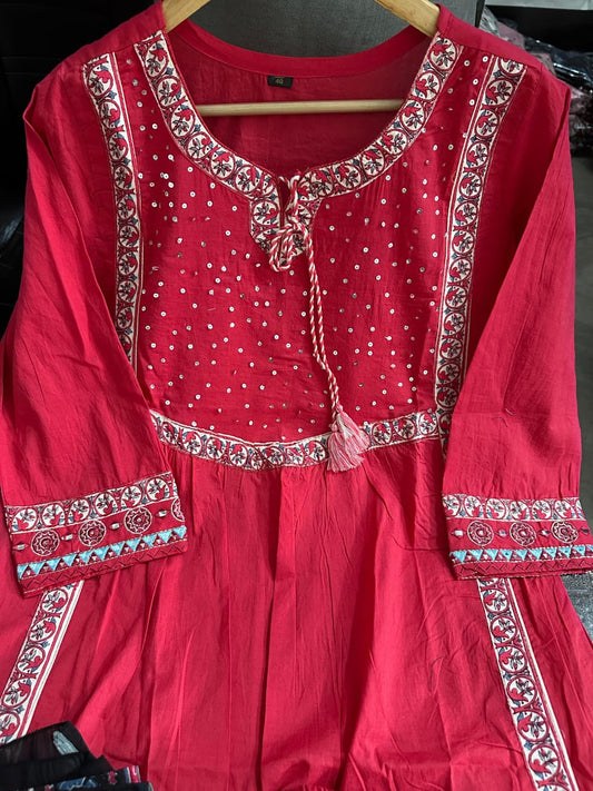 Anaya Printed Cotton Anarkali Suit Set with Mulmul Dupatta