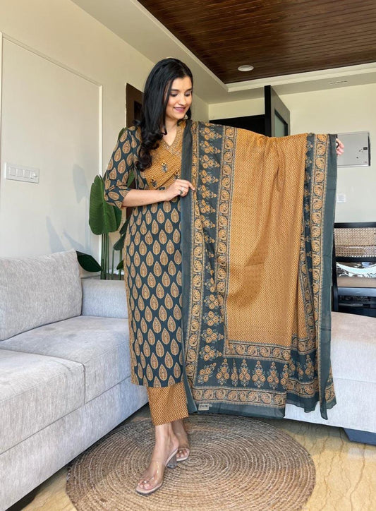 Paridhi Hand Block Printed Cotton Suit Set with Dupatta
